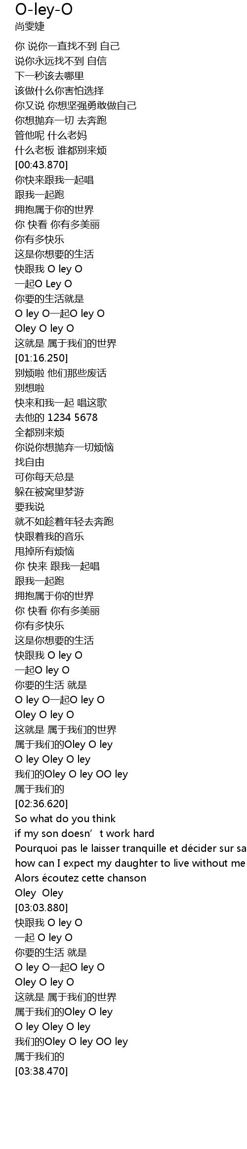 | [02:24.260] | 属于我们的Oley O ley |