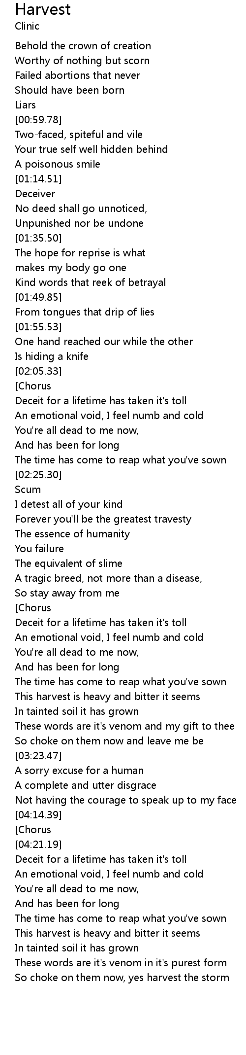 | [04:59.02] | So choke on them now, yes harvest the storm |