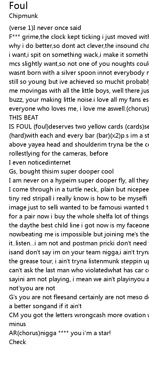 IS FOUL (foul)deserves two yellow cards (cards)send it off im going hard (hard)with each and every bar (bar)(x2)p.s im a star.(verse 2)im the shampoo above yayea head and shoulderim tryna be the coolest and tryna be the rollestlying for the cameras, before |