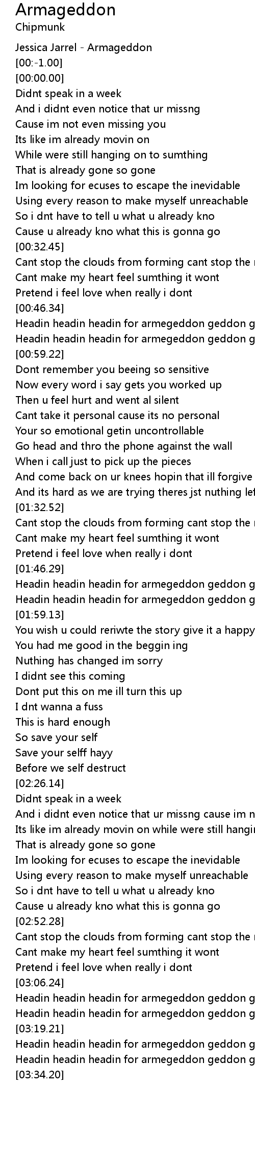 Headin headin headin for armegeddon geddon geddon |