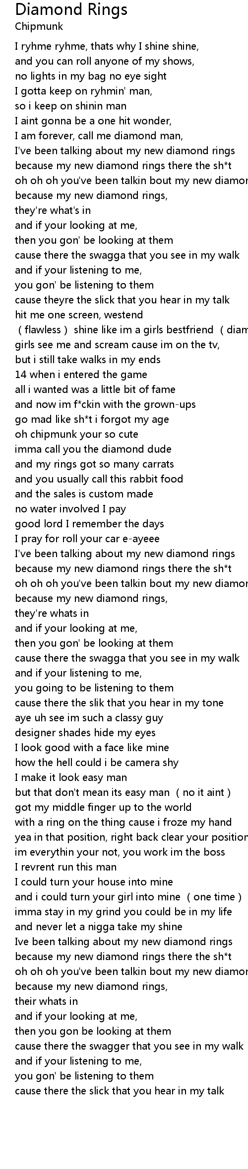 | [00:24.33] | because my new diamond rings there the sh*t |