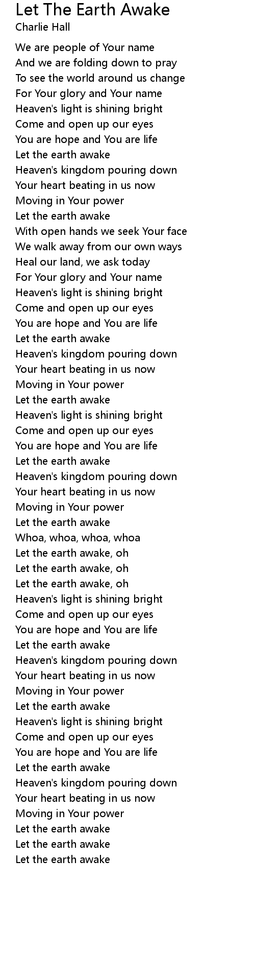 Let the earth awake, oh |
