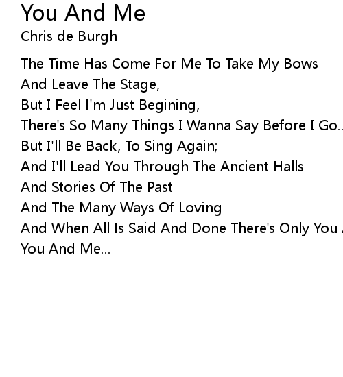 | And When All Is Said And Done There's Only You And Me, | |