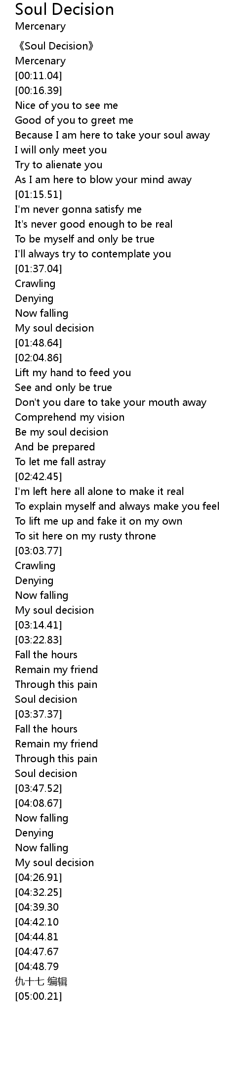 | [04:57.89][04:47.67] | Soul decision |
