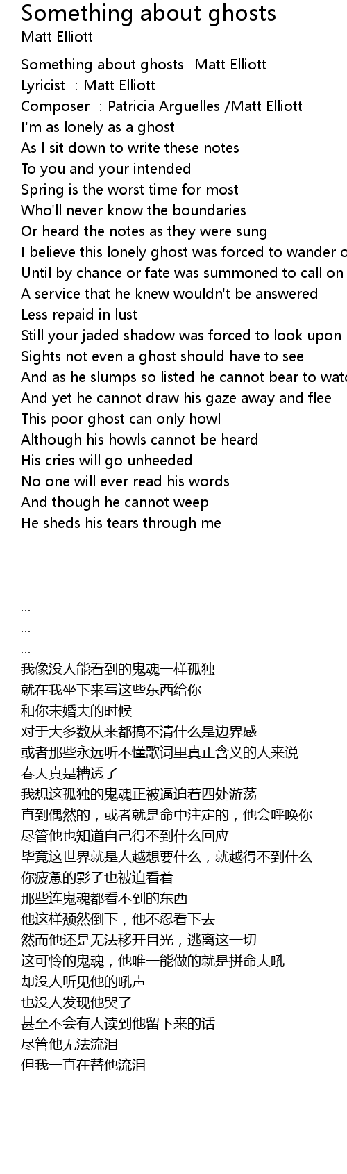 | [00:00.00] | Something about ghosts -Matt Elliott |