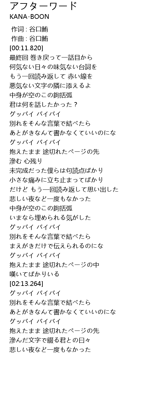 | [02:01.587] | グッバイ バイバイ |