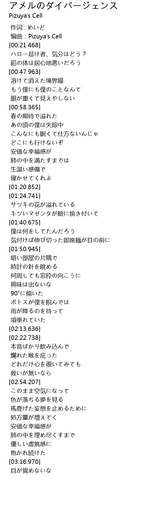 | [03:11.185] | 優しい虚無感に |