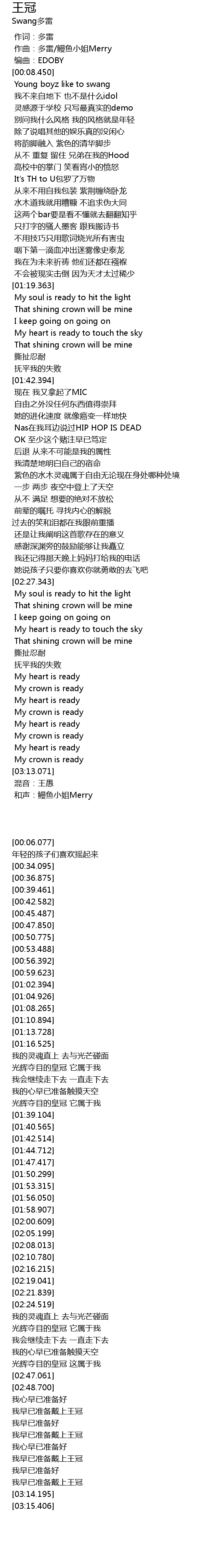 | [03:04.792] | 我早已准备戴上王冠 |