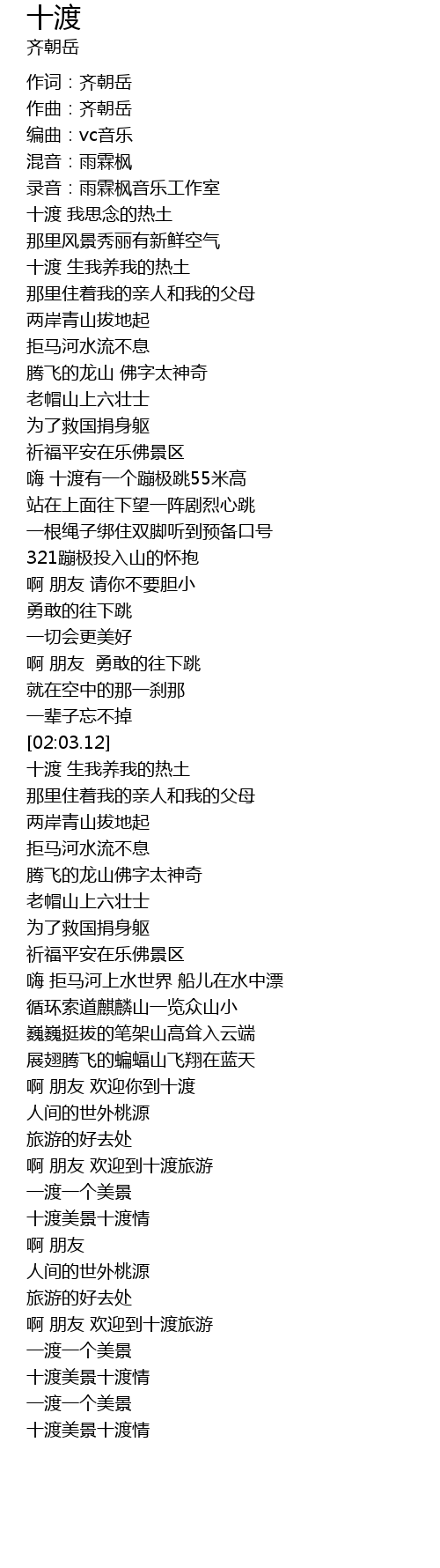 | [03:32.03] | 十渡美景十渡情 |