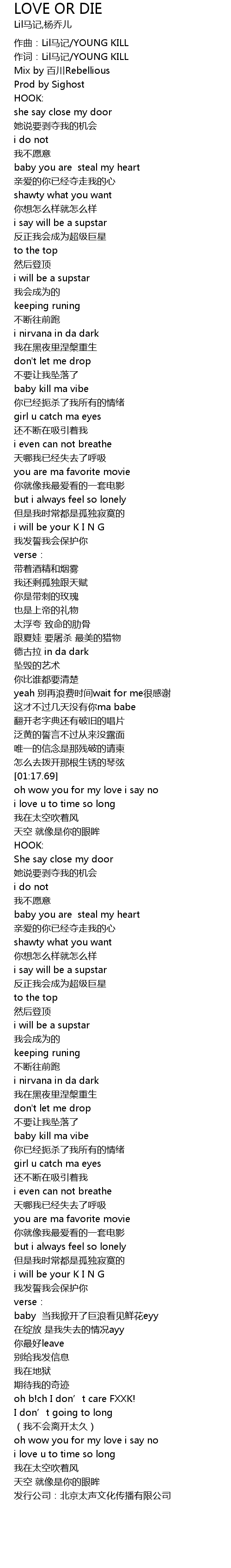 | [00:09.74] | zuò cí: Lil mǎ jì YOUNG KILL |