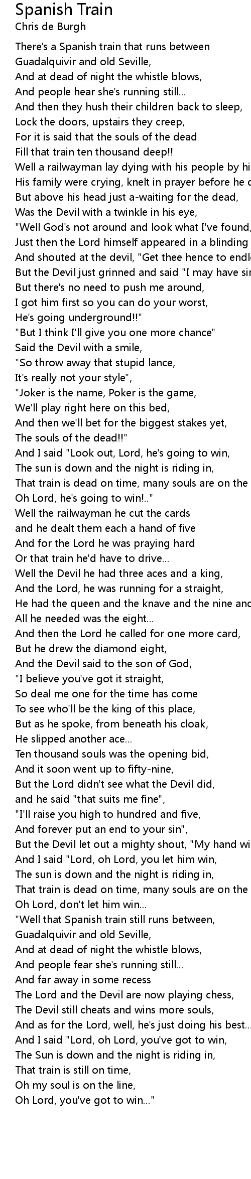 "Well that Spanish train still runs between, |