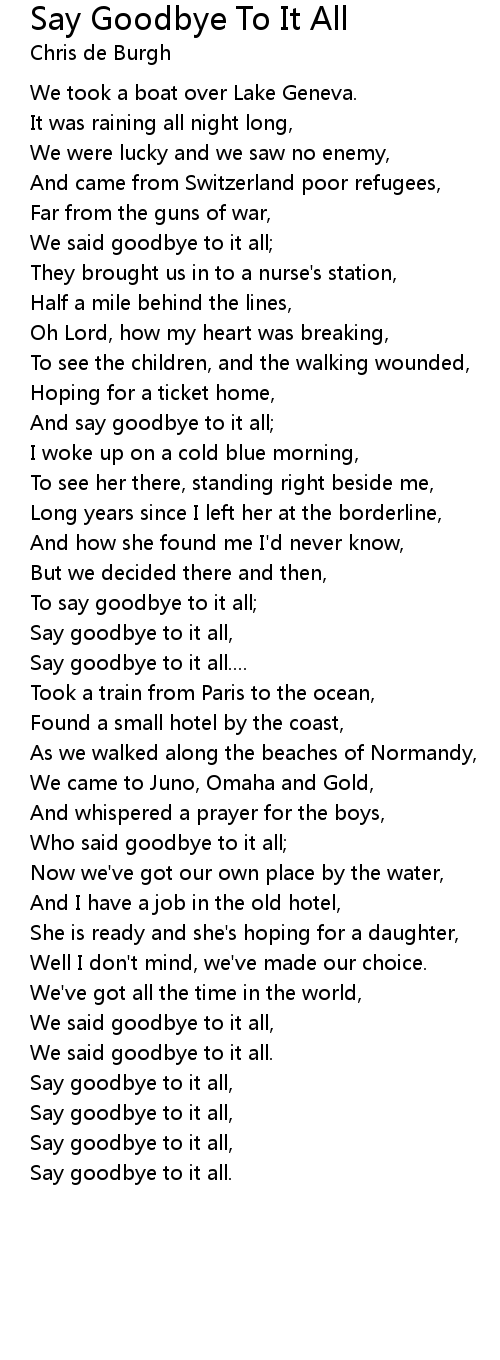 And say goodbye to it all; |