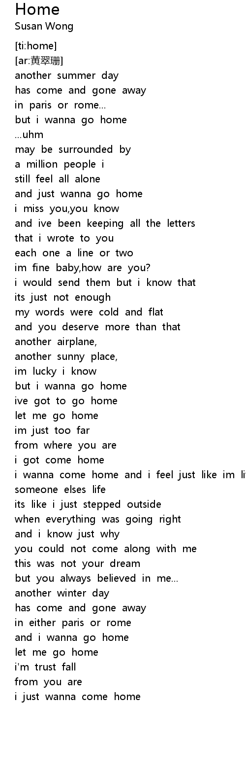 | [02:09.62] | i wanna come home and i feel just like im living |