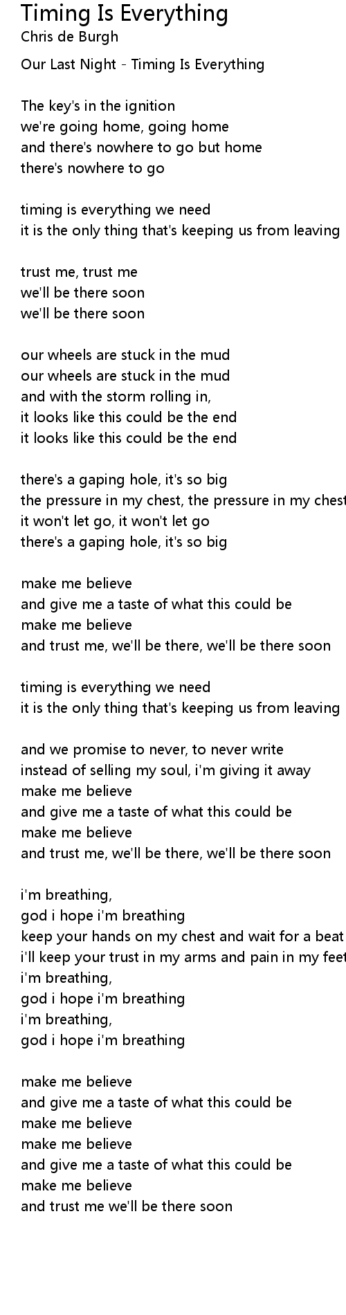 Timing Is Everything 歌词