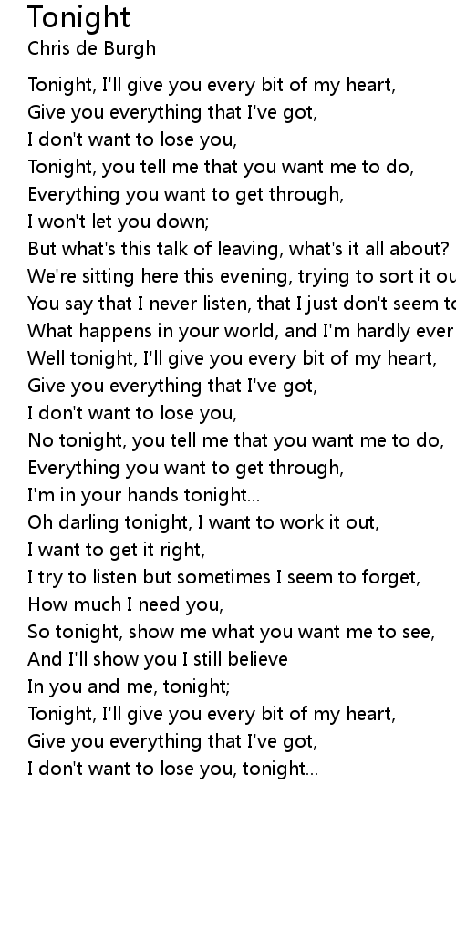 Tonight, I'll give you every bit of my heart, |