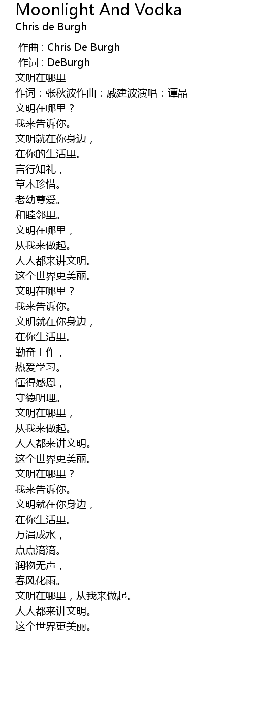 | [00:00.00] | 作曲 : Chris De Burgh |