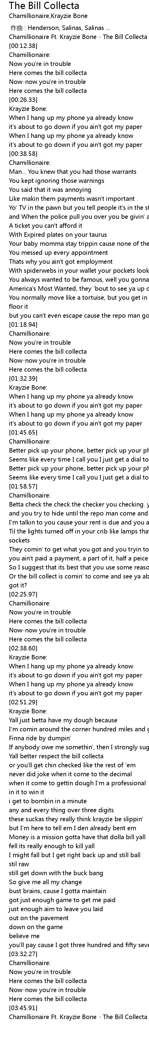 | [00:00.02] | Chamillionaire Ft. Krayzie Bone The Bill Collecta |