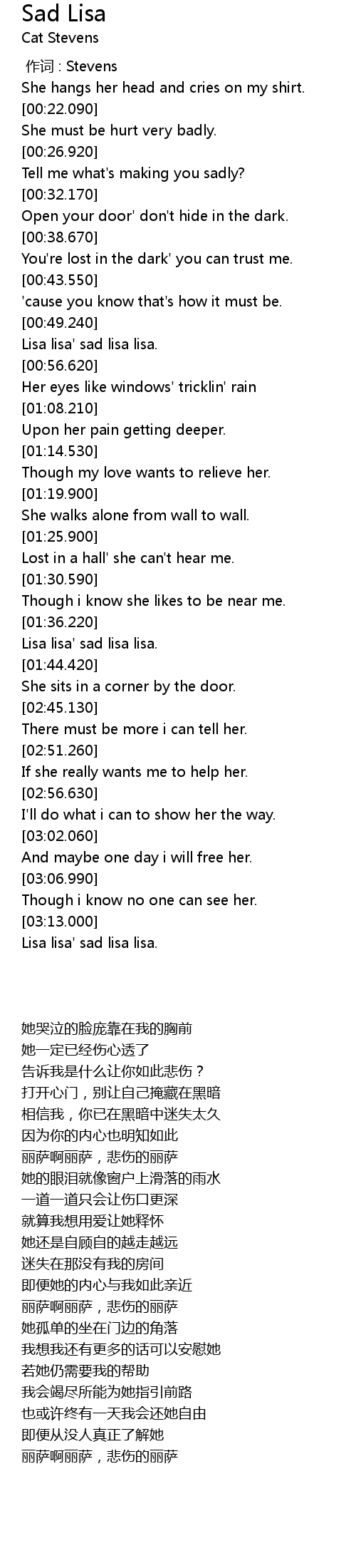 | [03:16.430] | 丽萨啊丽萨,悲伤的丽萨 |