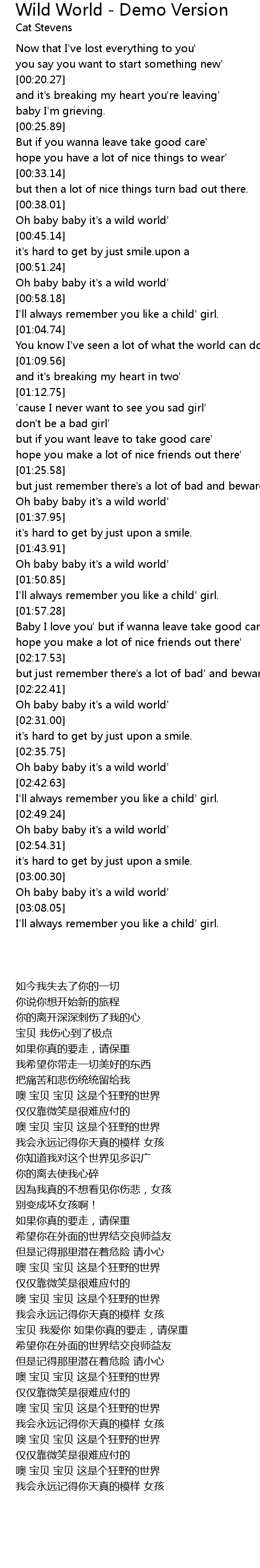 Oh baby baby it's a wild world' |