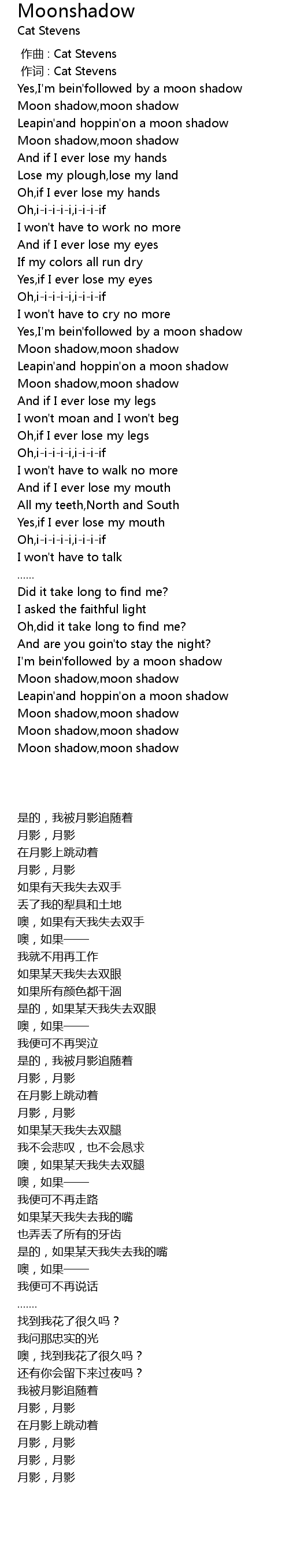 | [00:17.970] | Moon shadow,moon shadow |