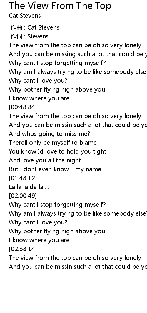 | [00:49.97] | The view from the top can be oh so very lonely |