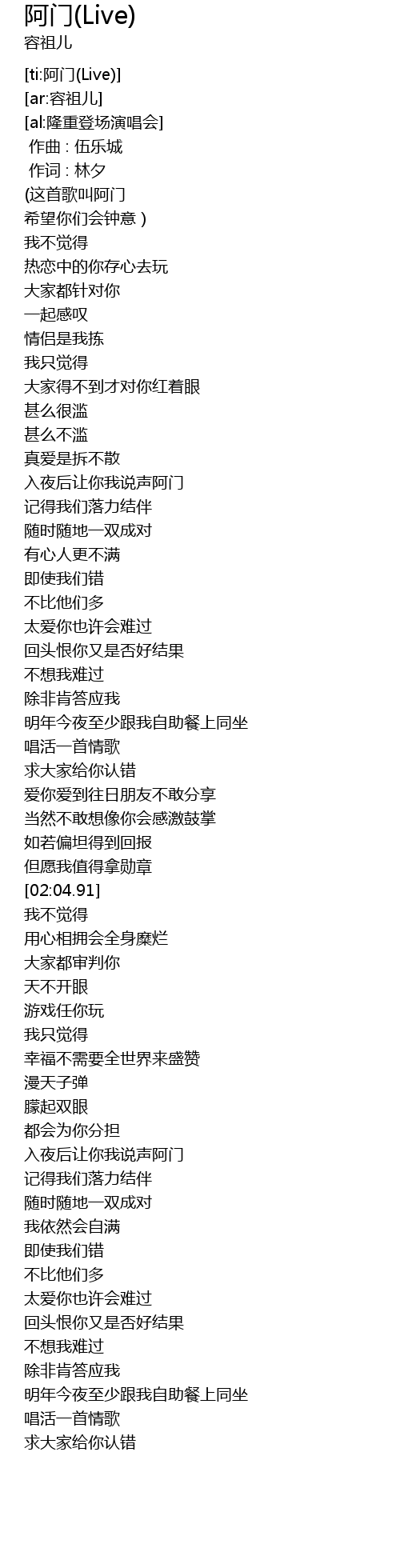 | [ti:阿门(Live)] | |