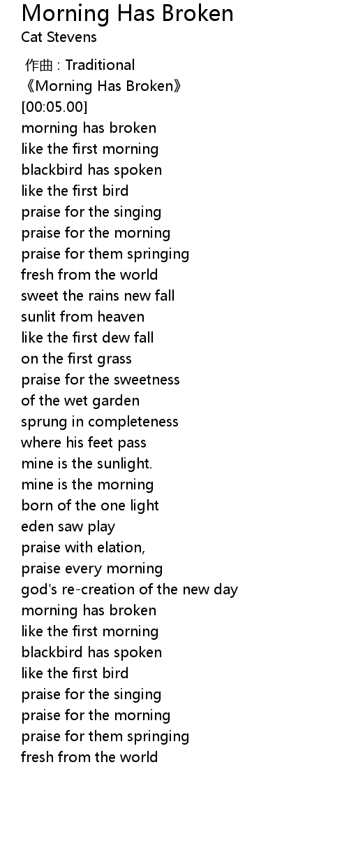 | [00:00.00] | Morning Has Broken |