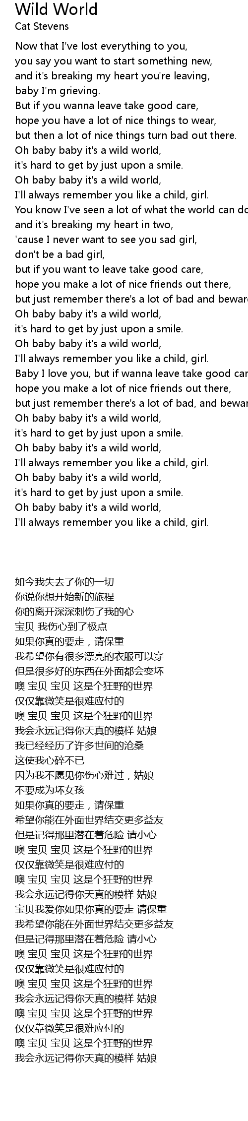 Oh baby baby it's a wild world, |