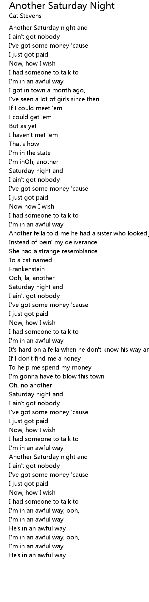 Another Saturday night and |