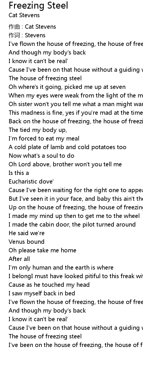 | I' ve flown the house of freezing, the house of freezing steel | |