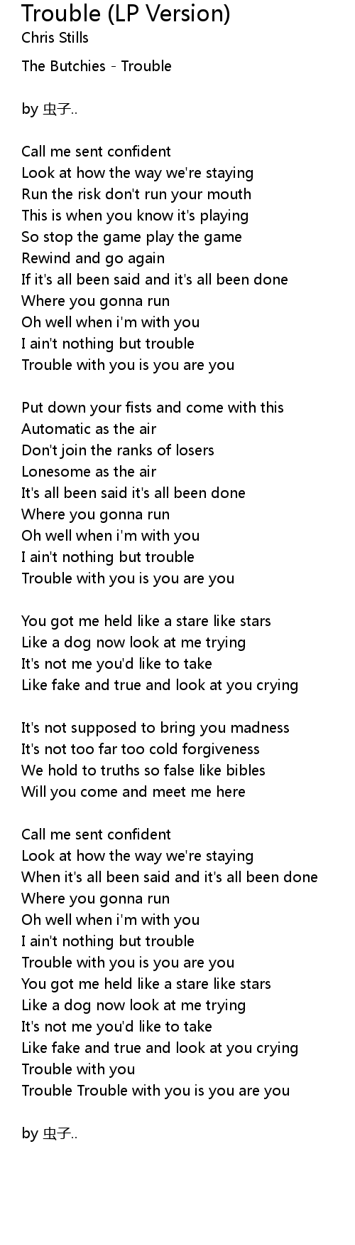 | I ain't nothing but trouble | |