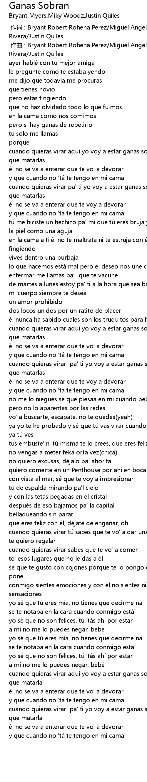 | [00:45.571] | cuando quieras virar pa' ti yo voy a estar ganas sobran de más hay que matarlas |