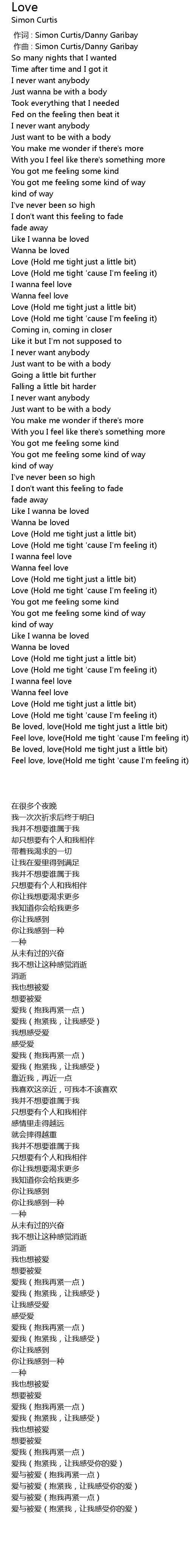 | [01:08.049] | Love (Hold me tight just a little bit) |