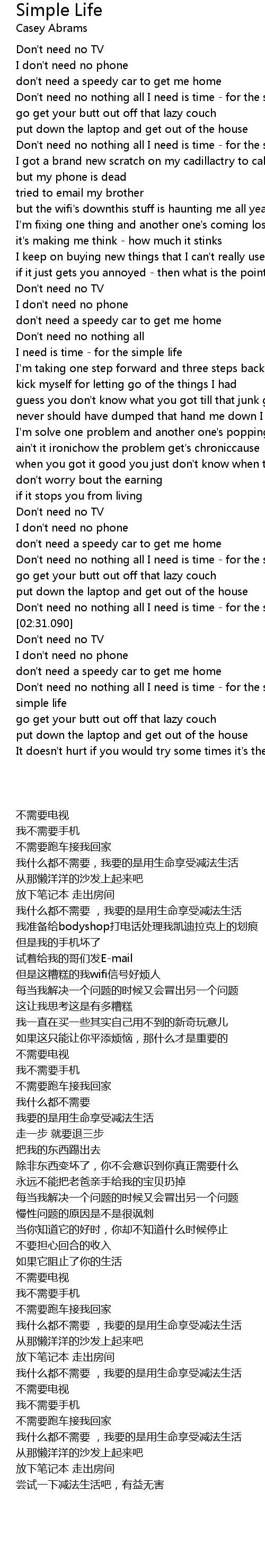 Don't need no nothing all I need is time - for the simple simple simple life |