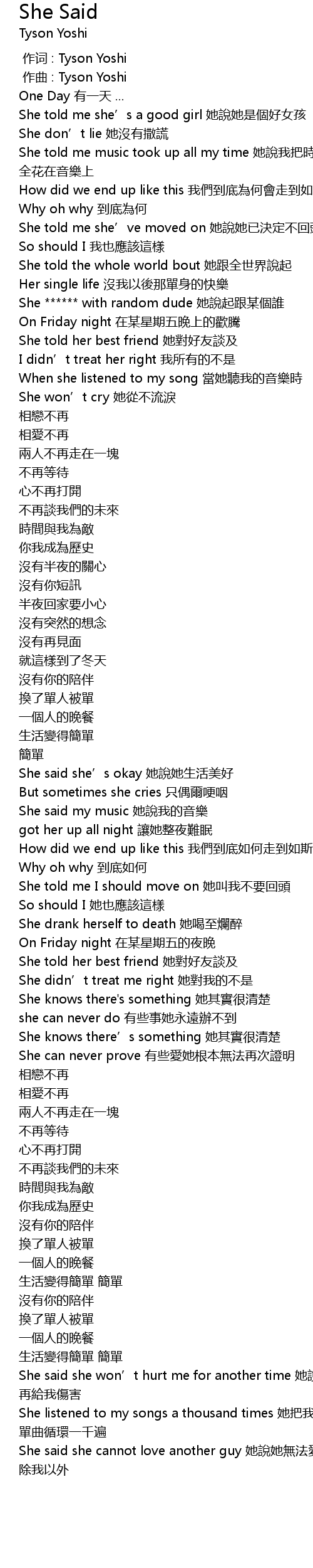 | 歌曲 | She Said |