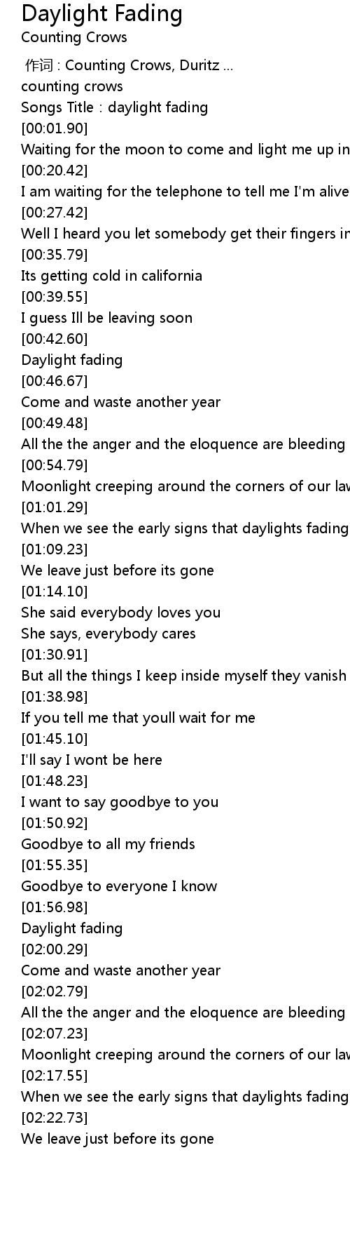 | [01:59.73] | Daylight fading |