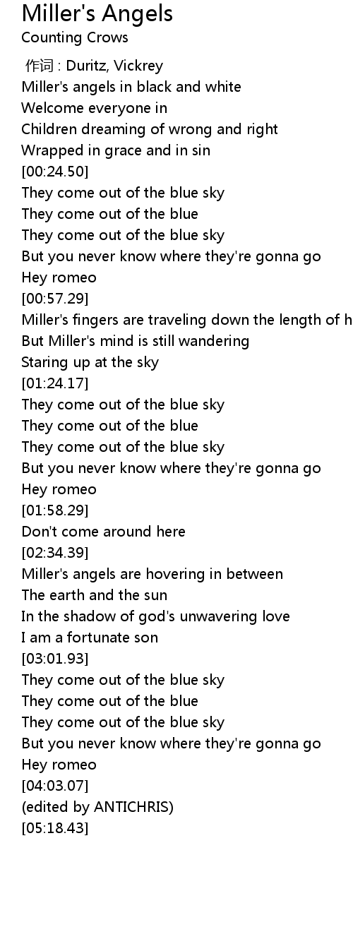 | [00:00.42] | Miller's angels in black and white |
