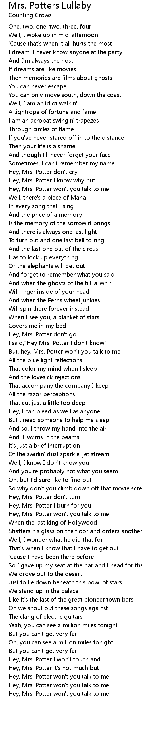 But, hey, Mrs. Potter won't you talk to me |