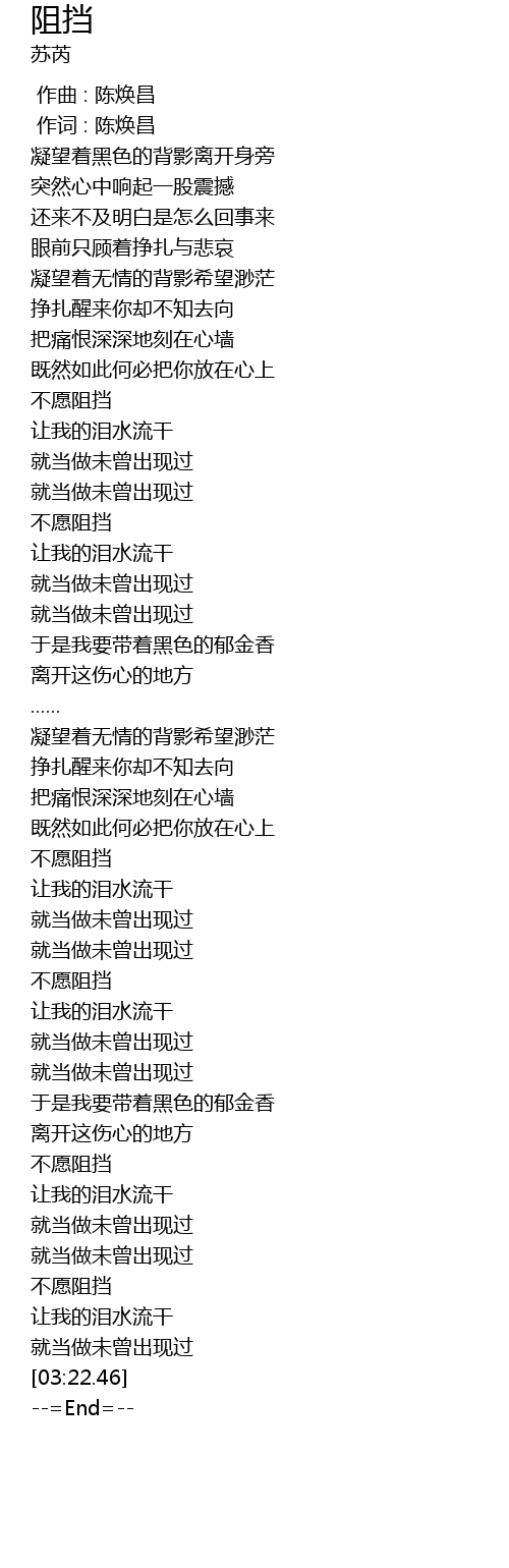| [03:00.66] | bù yuàn zǔ dǎng |