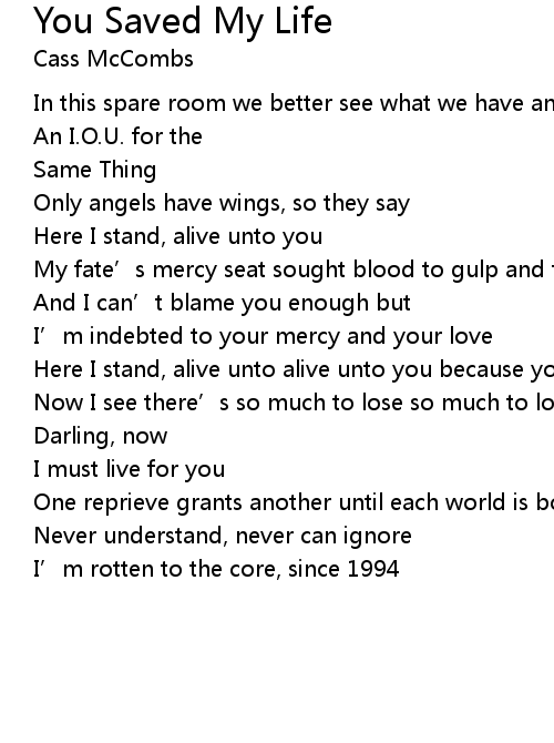 | Here I stand, alive unto alive unto you because you saved my life | |