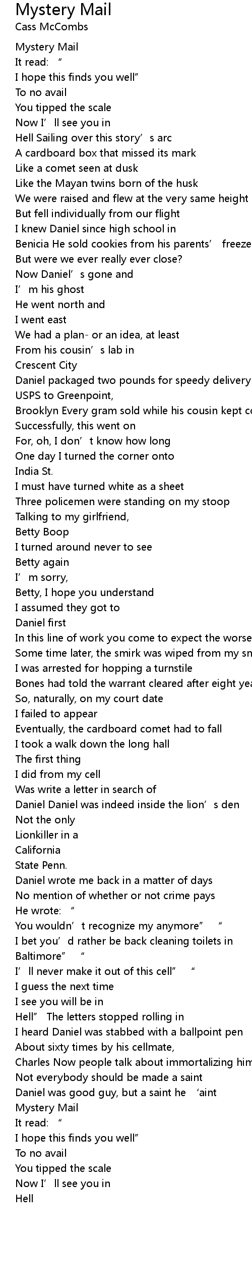| Hell” The letters stopped rolling in | |