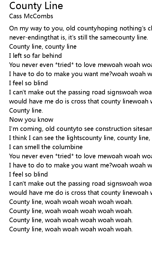 I can't make out the passing road signswoah woah woah woah woahall that you would have me do is cross that county linewoah woah woah woah woah |