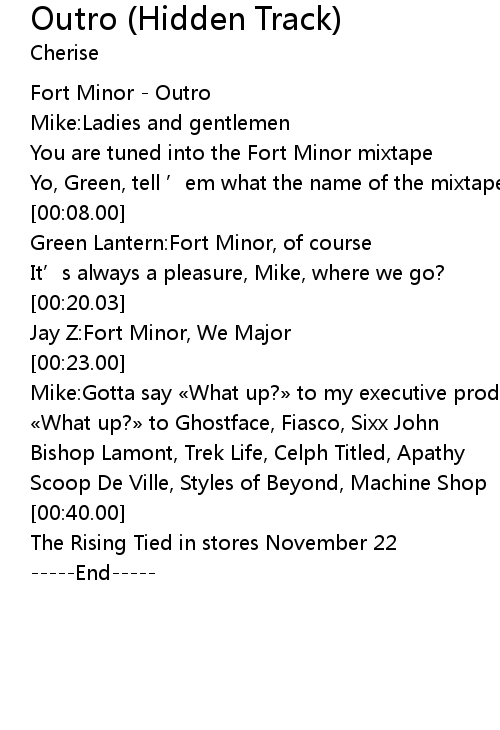 | [00:00.03] | Fort Minor Outro |