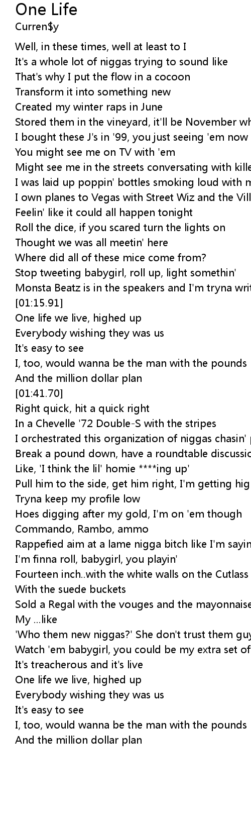 [01:09.97] Stop tweeting babygirl, roll up, light somethin'