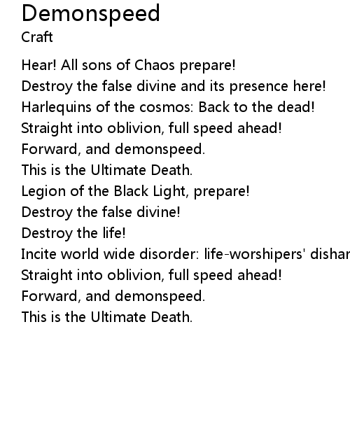 | Forward, and demonspeed. | |