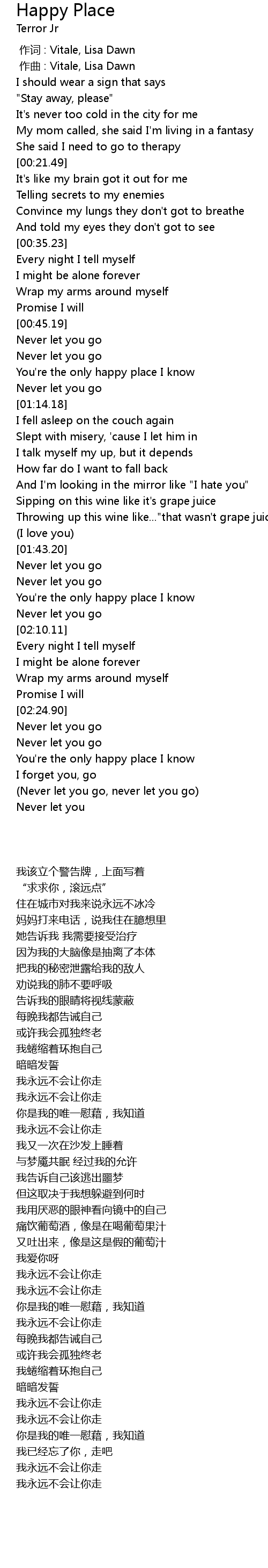 | [02:38.43] | You're the only happy place I know |