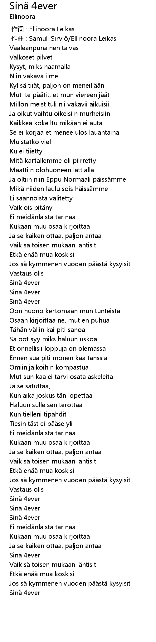 | [03:51.96] | Sinä 4ever |