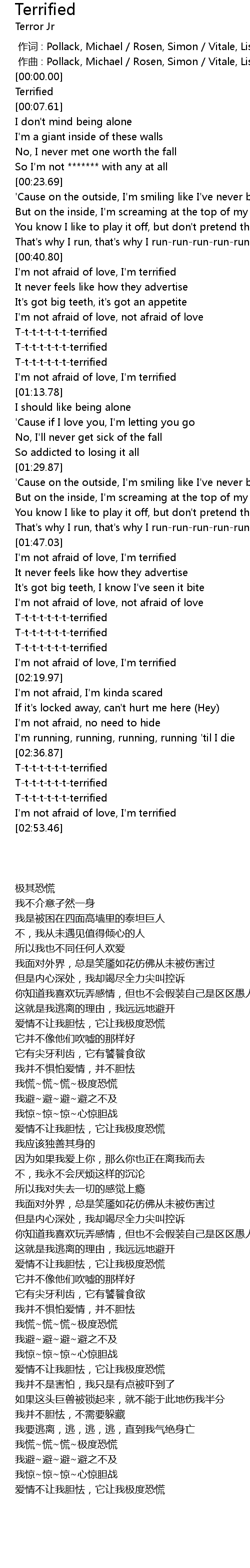 | [01:01.94] | T-t-t-t-t-t-t-terrified |