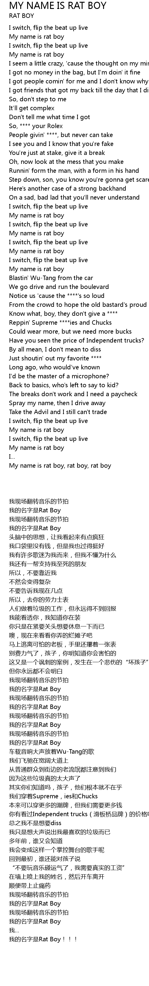 My name is rat boy, rat boy, rat boy |