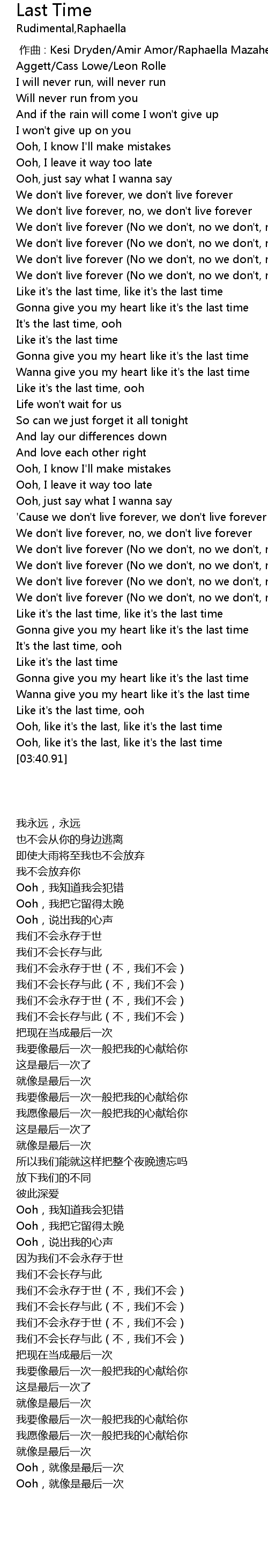 | [02:48.52] | We don' t live forever No we don' t, no we don' t, no we don' t |